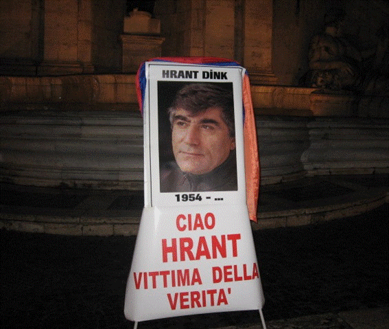 Il 19 gennaio 2007 viene ucciso ad Istambul sotto la redazione del suo giornale “Agos”. A sparargli mortalmente un diciassettenne Ogun Samast, appartenente ai circoli ultranazionalisti di Trebisonda dietro ai quali tramano oscuri servizi ed apparati.