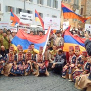 (ANSA) – ROMA, 24 APR – E’ passato un altro anno, il centounesimo dal genocidio che ha massacrato il popolo armeno nel 1915 con un milione e mezzo di vittime da parte dell’Impero ottomano, e a Roma sullo striscione che ha aperto la cerimonia davanti al Pantheon, il messaggio era forte e chiaro: “La Turchia riconosca il genocidio armeno”. E’ la principale richiesta della comunità armena che nel pomeriggio si è fatta spazio a Roma tra la muraglia dei turisti, con striscioni, bandiere e balli tradizionali che hanno incuriosito i passanti.