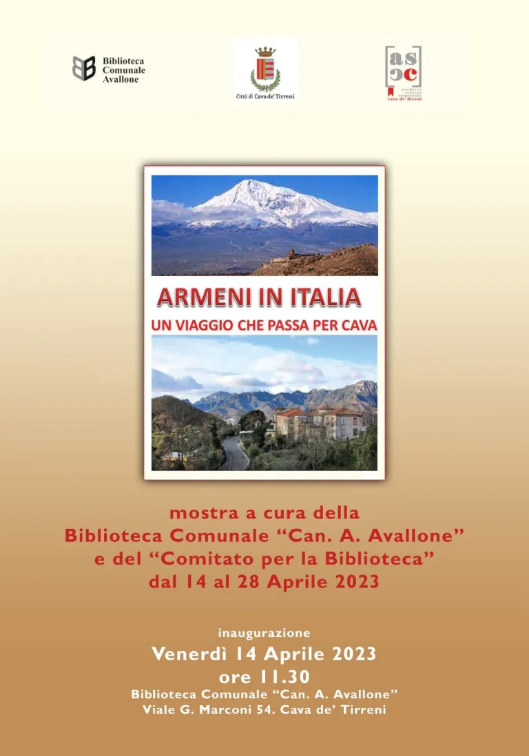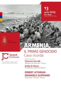 Quest’anno il Comune di Cava de’ Tirreni, in collaborazione con l’associazione Joined Cultures, ha onorato la Memoria del Genocidio invitando Robert Attarian ed Emanuele Aliprandi, membri della Comunità armena di Roma, a tenere una serie di incontri con la cittadinanza e con gli studenti del Liceo Scientifico Genoino. Contestualmente il Comitato per la difesa della Biblioteca ha inaugurato una mostra sugli Armeni e l’Italia, con una sezione dedicata sugli Armeni di Cava com’è naturale. La mostra è stata inaugurata venerdì 14 aprile mattina dalle stesse personalità armene di cui sopra.