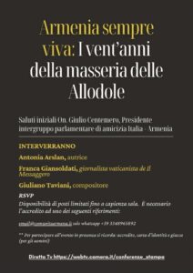 assoarmeni@gmail.com, cell. 338 856 0762.