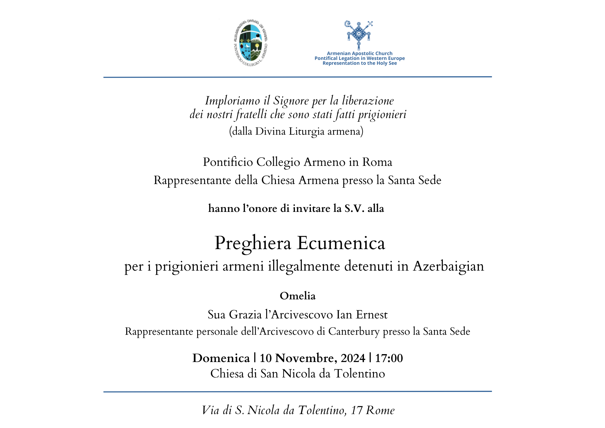 ROMA – 10 novembre 2024 – Preghiera Ecumenica per i prigionieri armeni detenuti a Baku