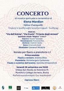 Giovedì 9 ottobre, ore 21.00, Palazzo Minucci ospiterà un intervento musicale di rarissimo ascolto, dal titolo Tra chiese e campi. canti sacri e profani della gente armena, a cura di Edesse Ensemble, direzione Justine Rapaccioli, per immergersi in un repertorio musicale di tradizione orale conservatosi grazie al lavoro di trascrizione di musicisti e compositori effettuato qualche decennio prima del tragico genocidio.
