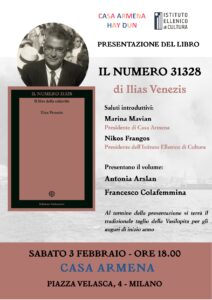 MILANO – 03 Febbraio 2024 – Presentazione del libro “Il numero 31328” di Ilias Venezis