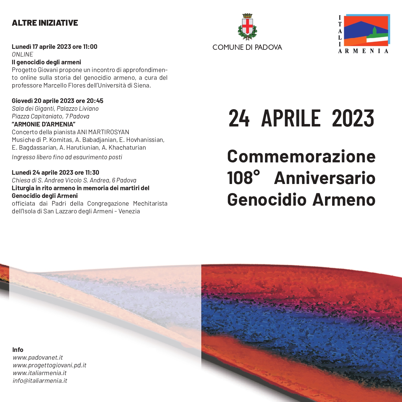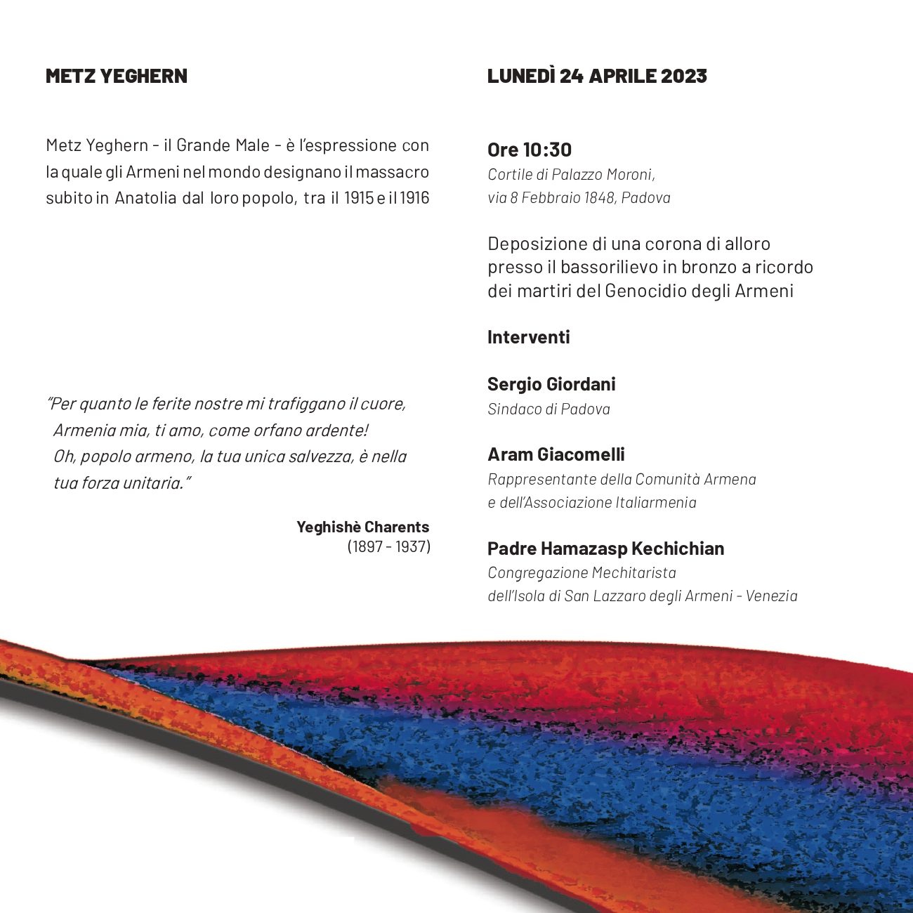 PADOVA – 17, 20 e 24 aprile 2023 – Cerimonia per il 108° anniversario del Genocidio Armeno