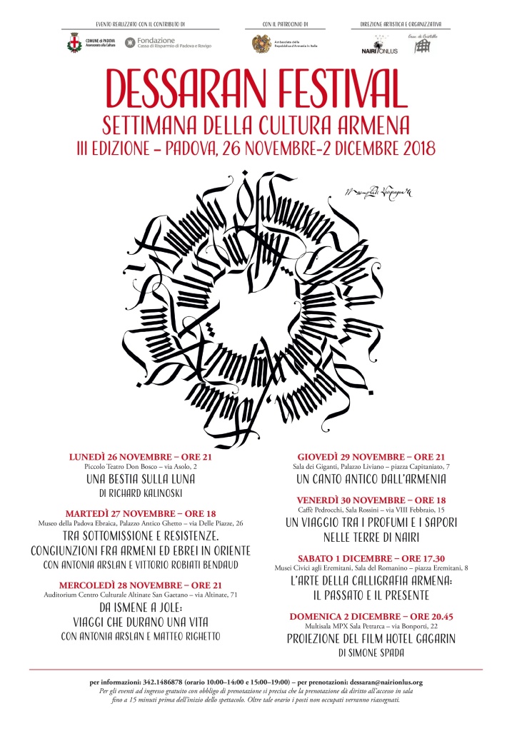 PADOVA -dal 26 novembre al 2 dicembre – III Edizione del Dessaran festival: settimana della cultura armena