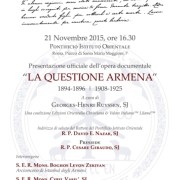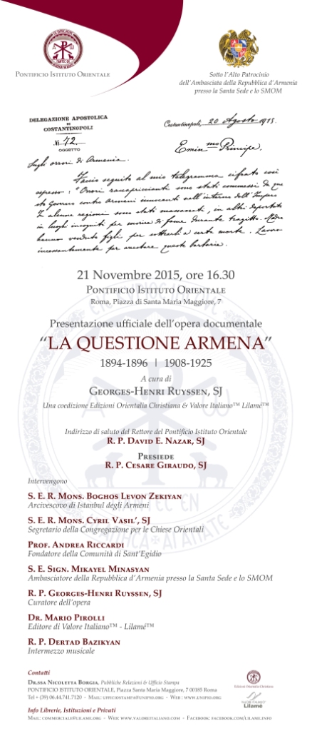 La S.V. è cordialmente invitata alla presentazione ufficiale dell’opera documentale “LA QUESTIONE ARMENA” A cura di Georges-Henri Ruyssen, SJ,