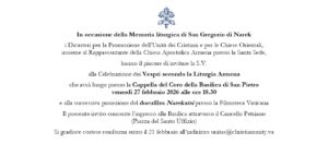 ROMA – 27 febbraio 2026 – Fetsa liturgica di San Gregorio di Narek – Celebrazione a San Pietro