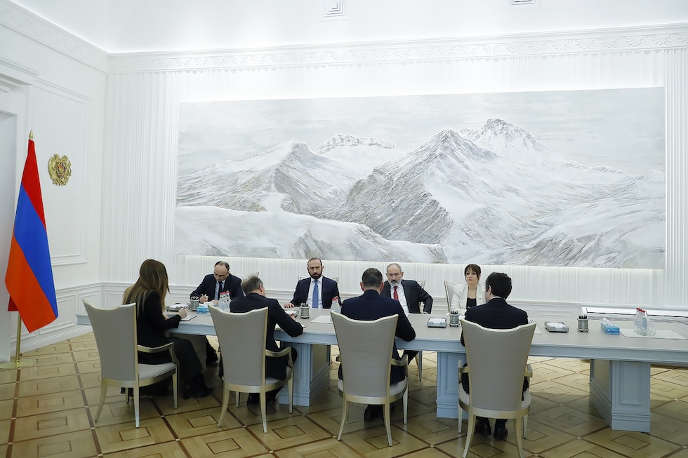 Il monte Aragats nell’ufficio del primo ministro armeno, 10 gennaio 2024 (dal sito del governo armeno)