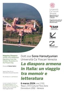 http://www.comunitaarmena.it/wp-content/uploads/2022/08/Logo_armenia-04-1-300x92.png00adminwphttp://www.comunitaarmena.it/wp-content/uploads/2022/08/Logo_armenia-04-1-300x92.pngadminwp2024-02-26 18:51:522024-02-26 18:53:04VENEZIA - 06 marzo 2024 - La diaspora armena in Italia: un viaggio tra memoir e letteratura