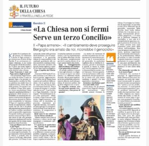 Il Vescovo della Chiesa Armena Aram I a Quarta Repubblica: “Papa Francesco aveva una chiara visione di apertura della Chiesa al popolo”