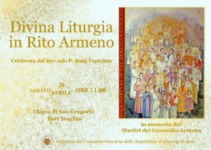 Questo il testo della nuova stele che, in onore del vescovo cappuccino Zohrabian, mancato nel 1972, l’Accademia di Studi Mediterranei di Agrigento, rinnovando l’appuntamento con “I Giusti dell’Umanità”, si prepara a collocare nel “Giardino dei Giusti” con il patrocinio dell’Assessorato Beni Culturali e Identità Siciliana della Regione, della Città e del Parco della Valle dei Templi, dove dieci anni fa è sorto questo straordinario “Pantheon del Bene”.